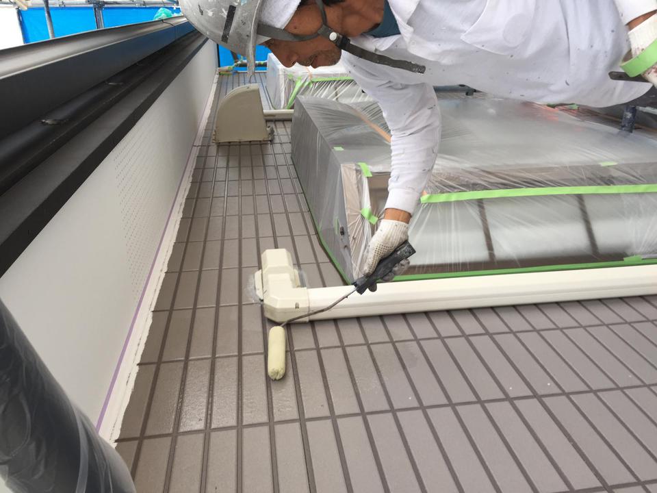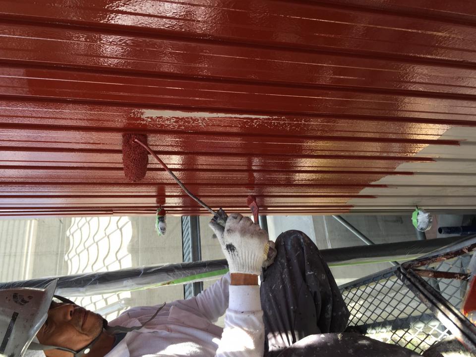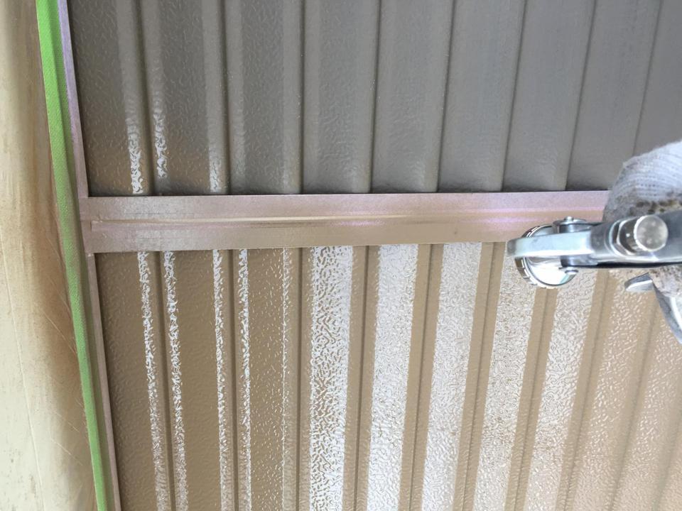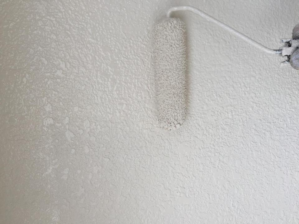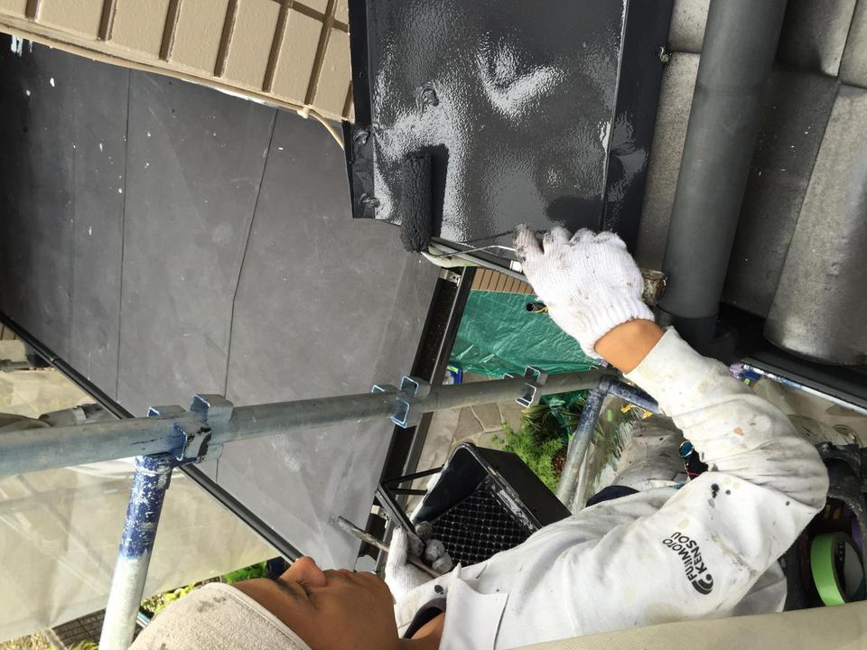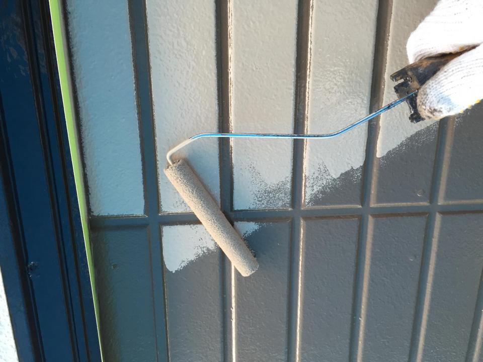 フッ素塗料にて2階外壁塗りつぶし、1階外壁は意匠塗り