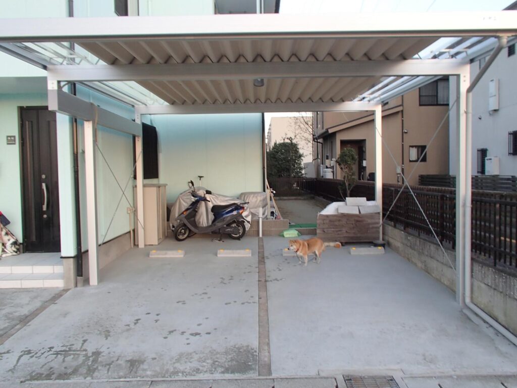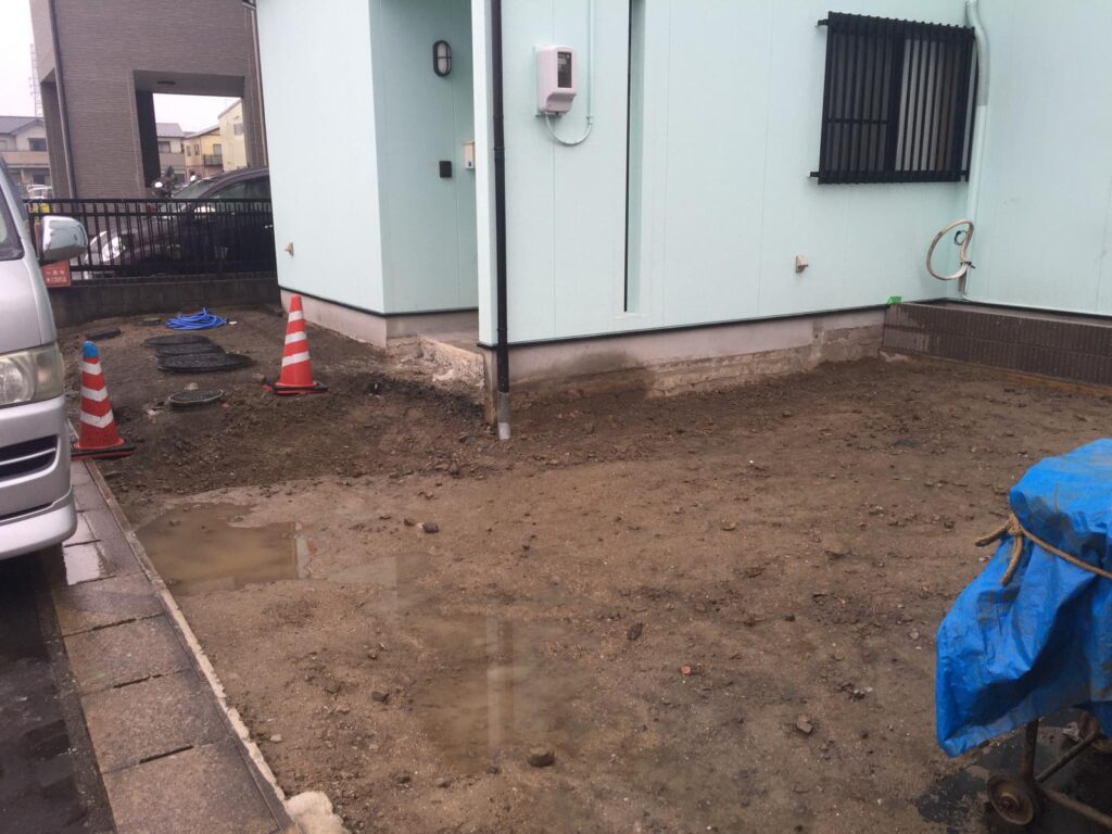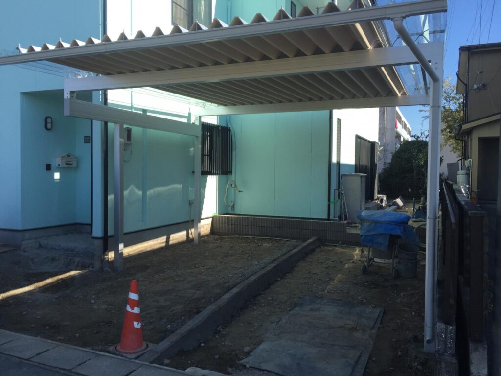 カーポート工事、土壌改良工事、土間工事、下水切り替え工事
