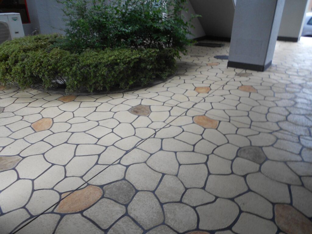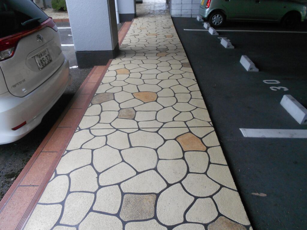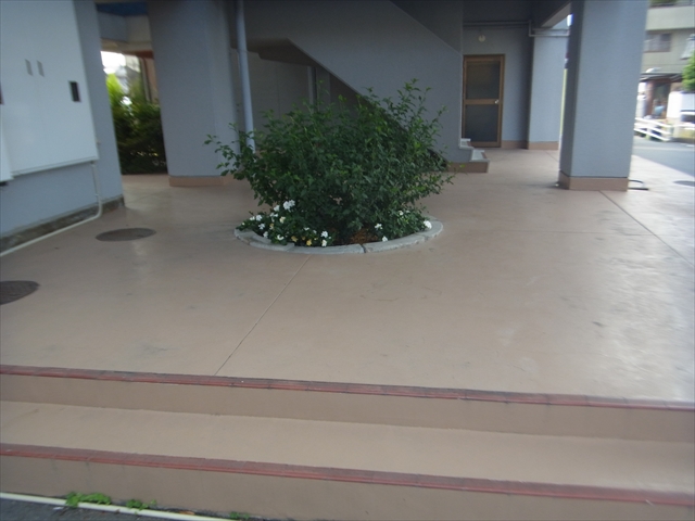 瑞穂市にてアパートのマットスプレーを行いました。 一階共用部すべての景観塗装工事 一部樹木の撤去後アクセント 滑り止め効果、入居促進効果抜群です。