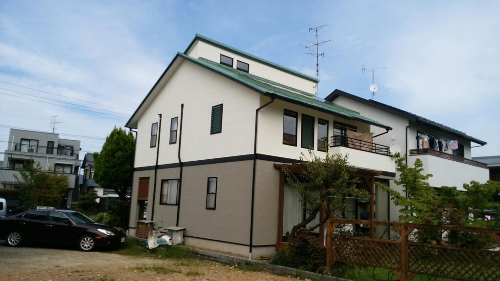 - 外壁サイディング、屋根スレート瓦、付帯箇所塗り替え、テラス波板の交換、シーリング材:オートンサイディングシーラント