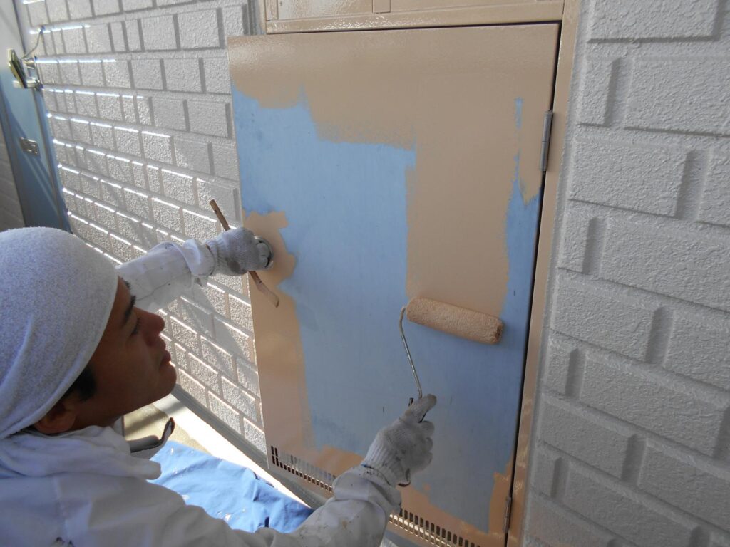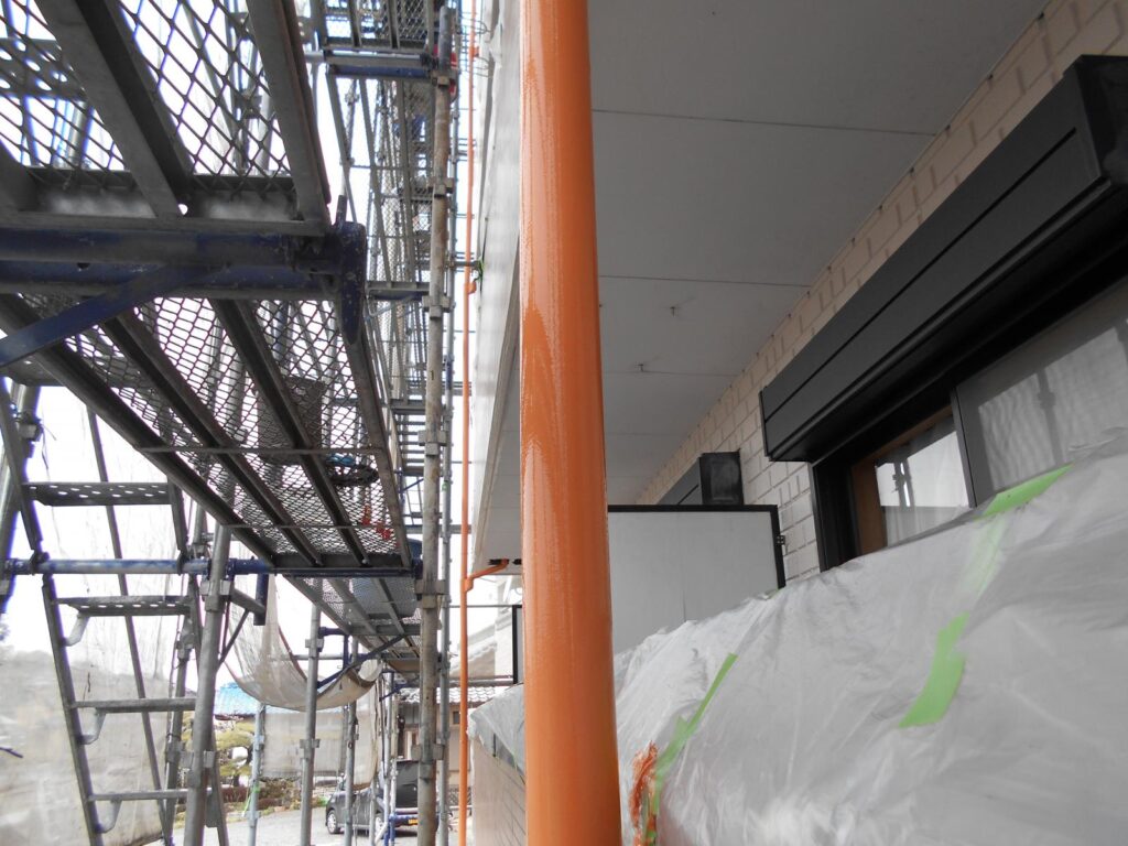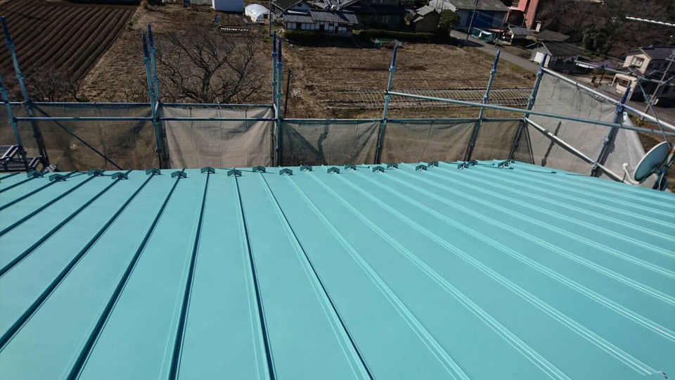 美濃加茂市にて集合住宅の改修工事を行いました。 屋根はガルバリウム鋼板カバー(太陽光下地)雪止め設置 共用通路、ベランダ床は長尺シート+ウレタン塗膜防水 軒天トタン貼、外壁塗装工事等