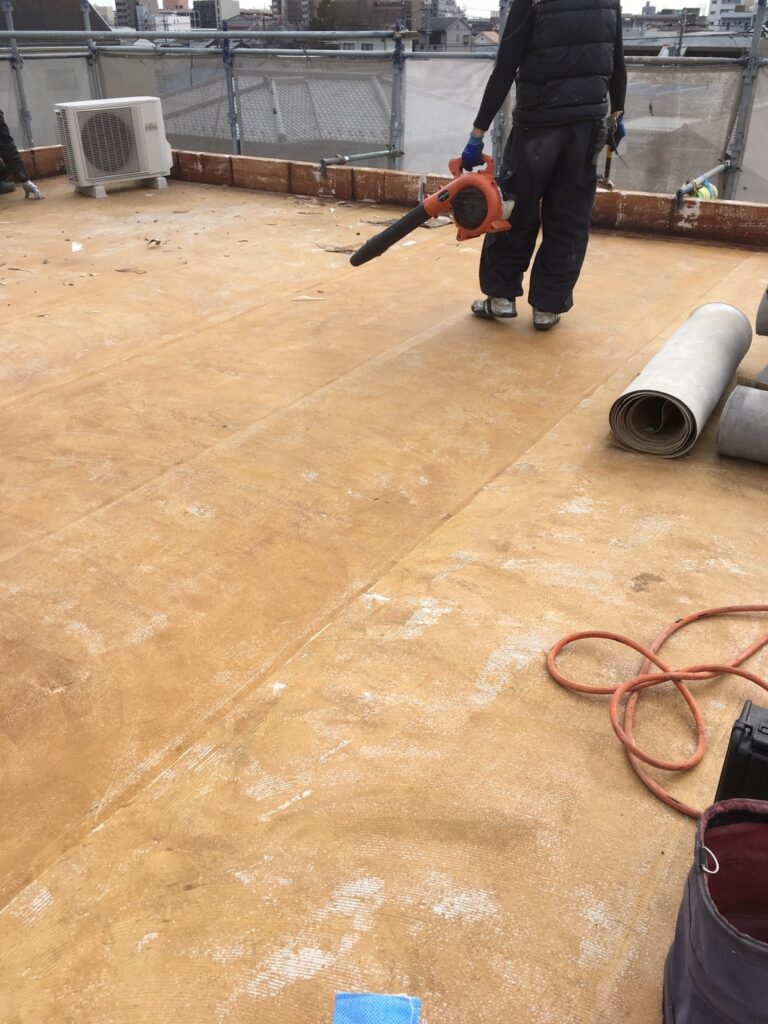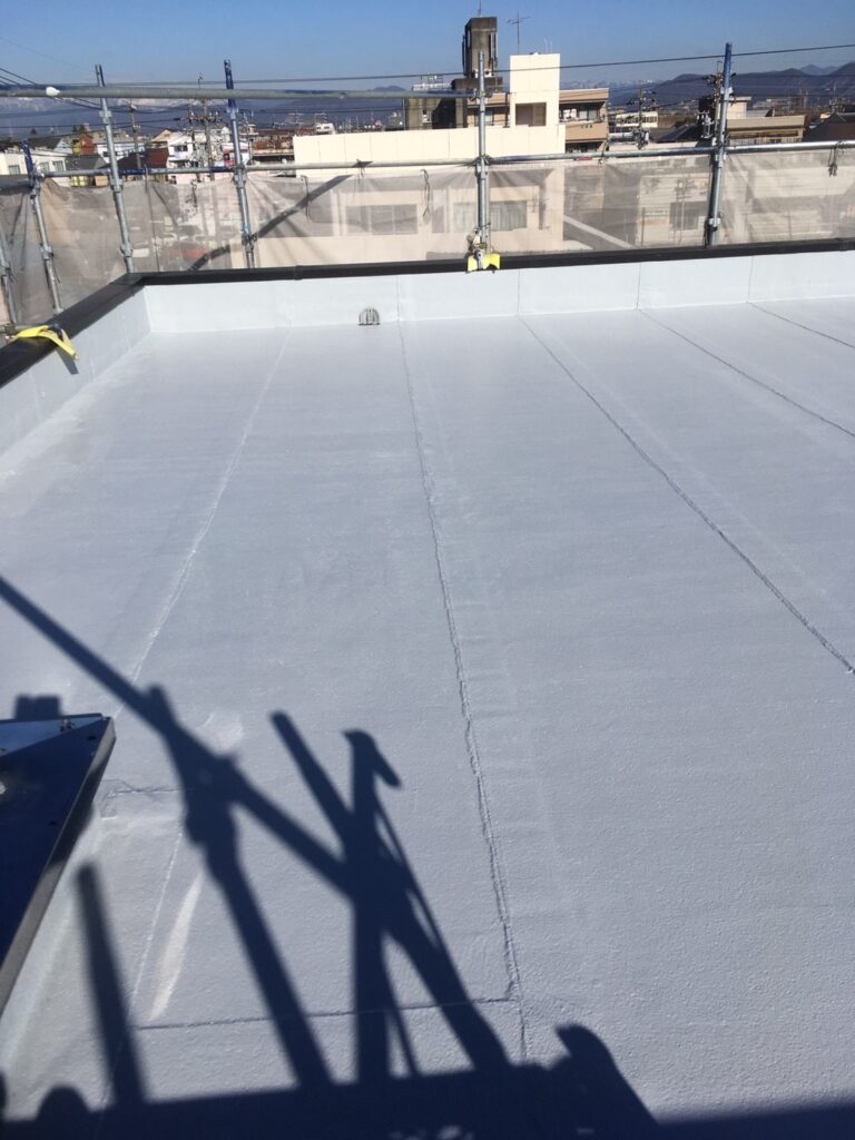 岐阜市T様邸にて、屋上防水工事、外壁塗装工事を行いました。 屋上防水は塩ビシートからアスファルト防水へ交換、 外壁塗装、付帯部塗装、シャッターBOXの遮音、こうもり対策等