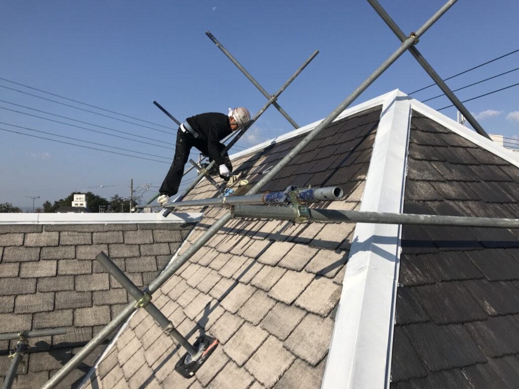 外壁サイディング、化粧スレート屋根(屋根足場)サイディングクリヤー
