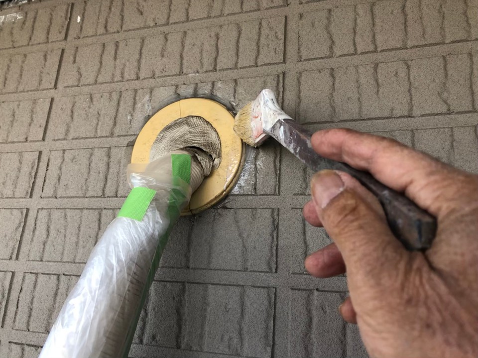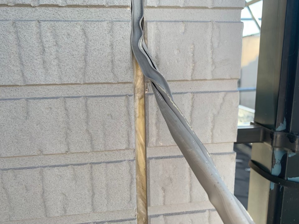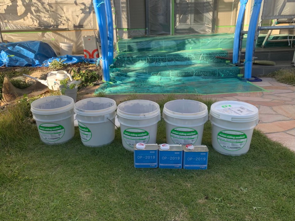 H様邸の外壁の塗り替えです。 ハウスメーカー(パ)の建物なので、目地にはガスケット。 ガスケットを撤去してシーリング材に変更しました。 外壁のサイディングパネルは クラック補修 後に塗装です。 色は22-70B
