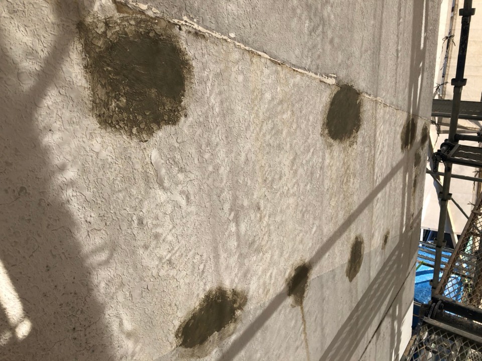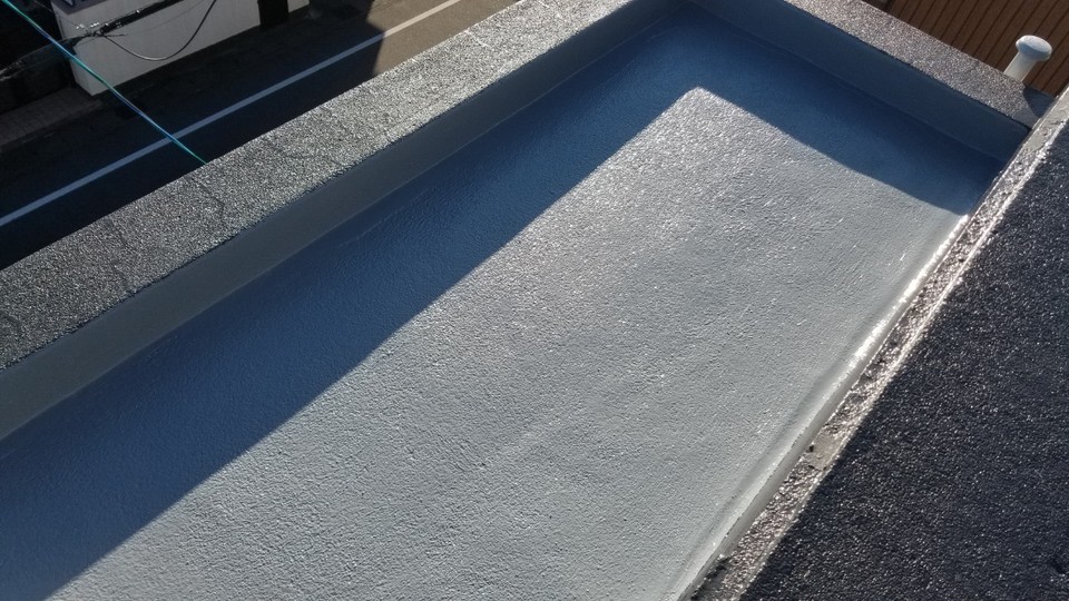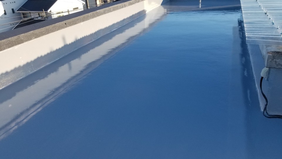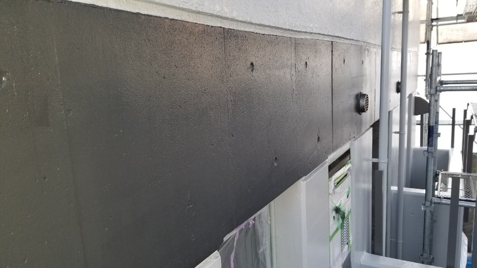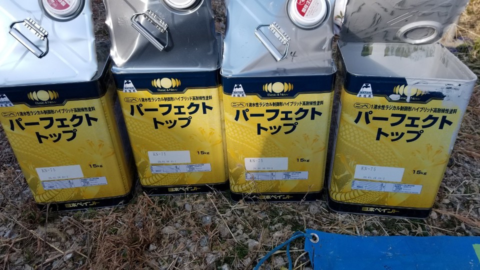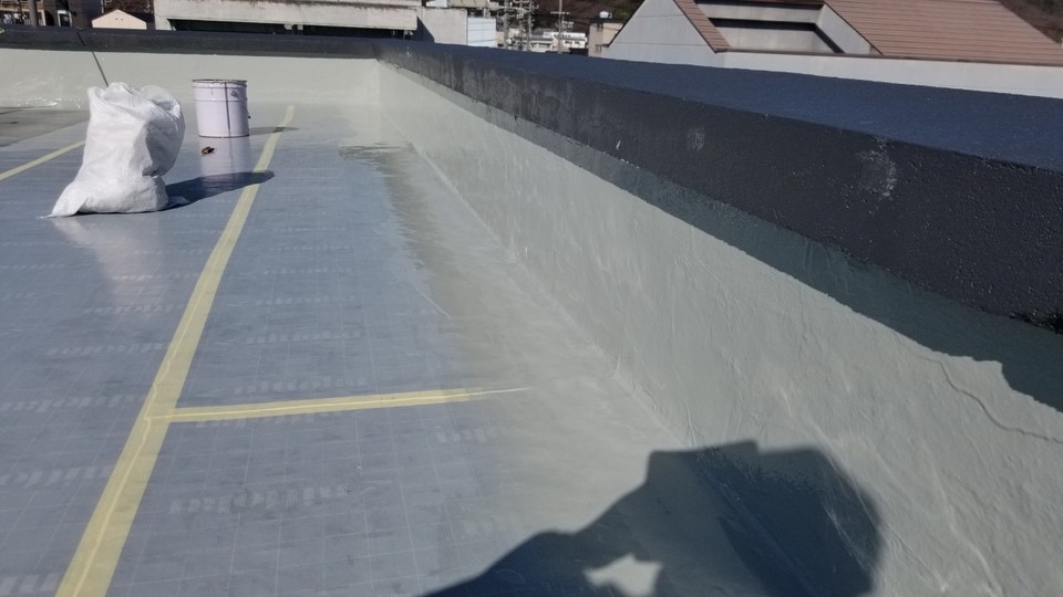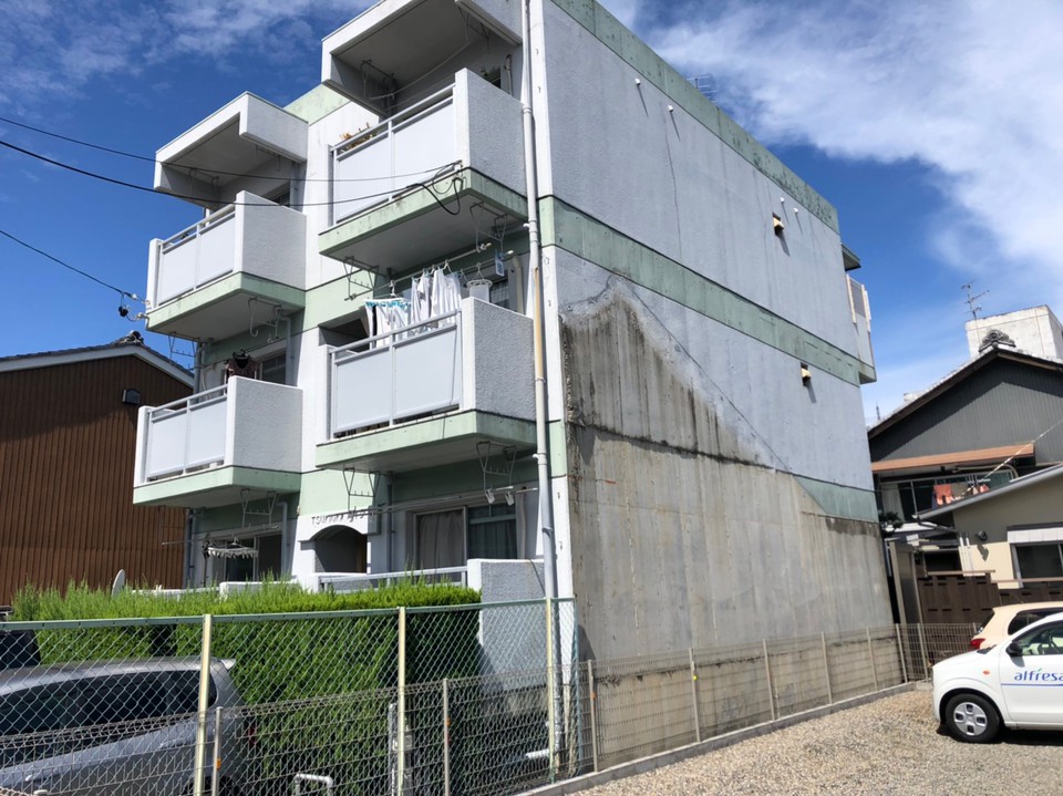 岐阜市Tオーナー様の所有アパート 改修工事 外壁は隣接した家が無くなったため、外壁に家の跡がありました。 躯体がRCだったため補修後に塗り替え。 屋上はゴムシート防水が剥がれていたので ウレタン塗膜防水通気緩衝工法にて施工しました。 外壁の色> KN-75 (日塗工見本帳) 帯の色> KN-30程調色