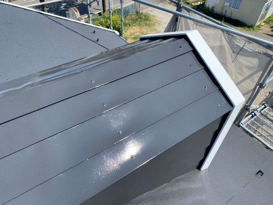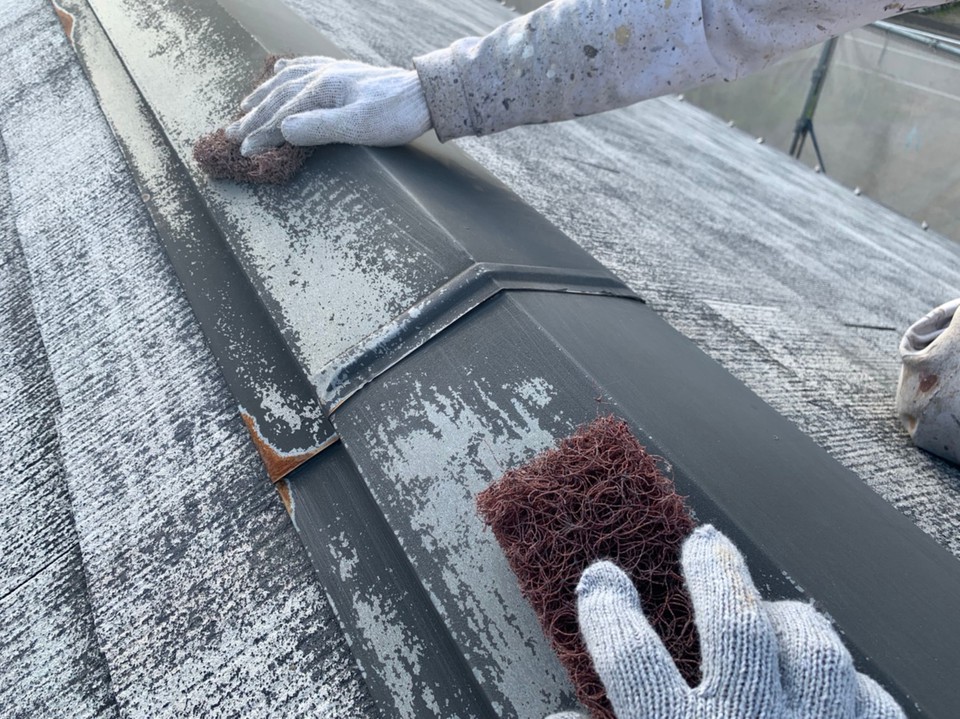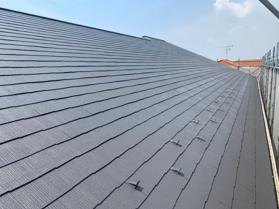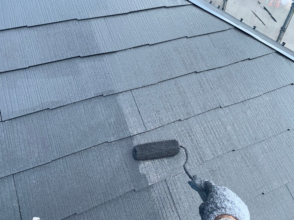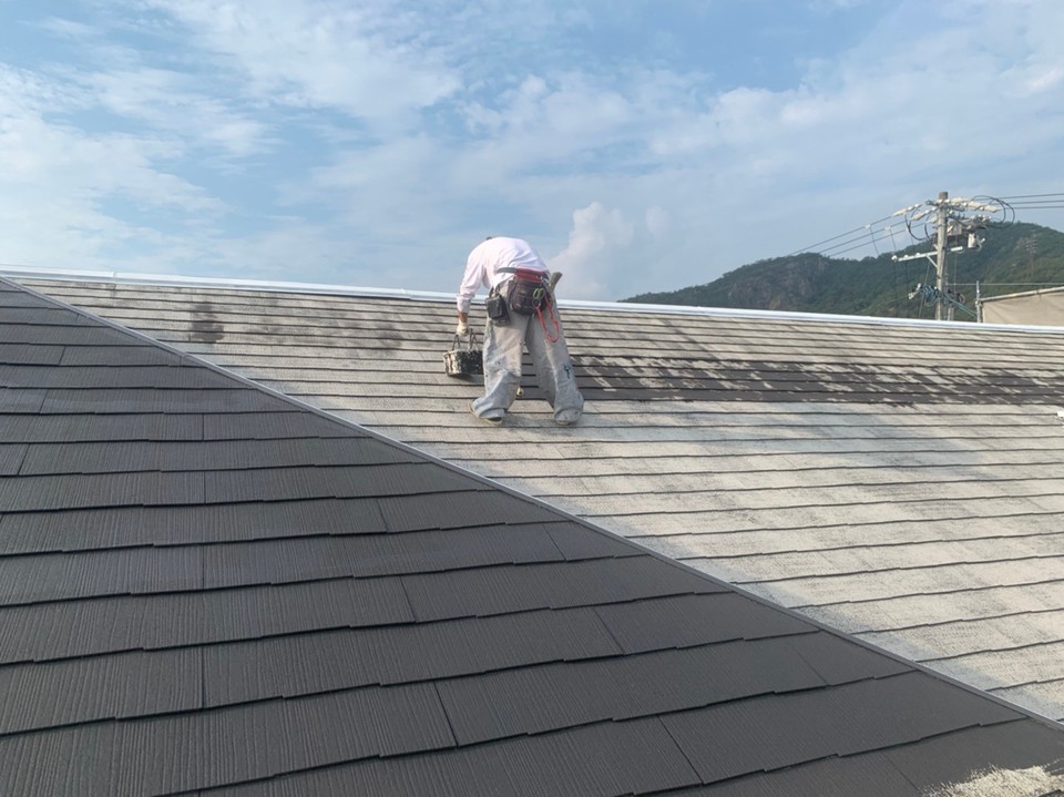 屋根はカラーベストで表面の傷みが著しい為、5層工程で仕上げました。