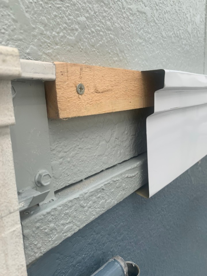 ハウスメーカーの建物で、胴差の欠損部を板金にて加工取付。