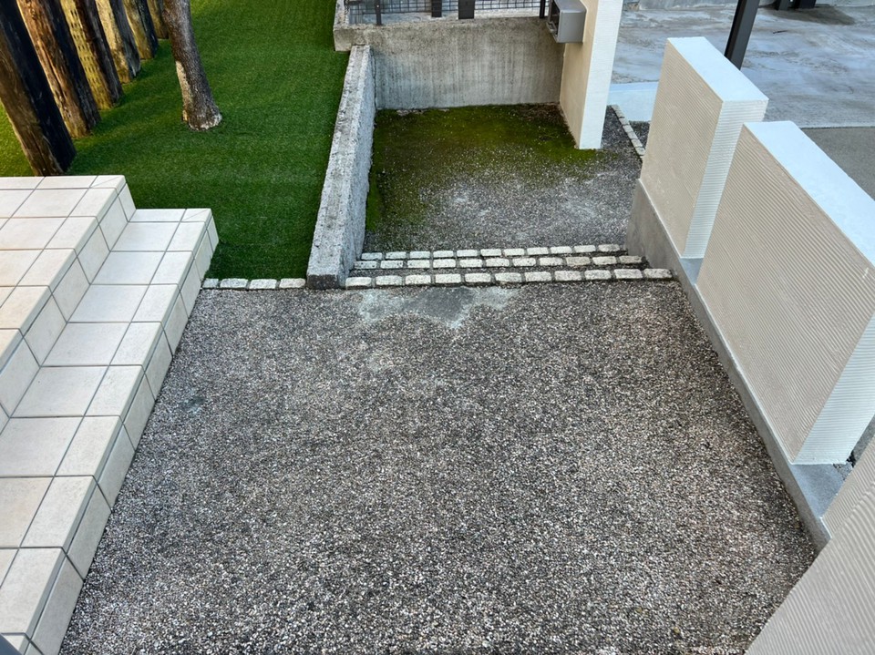 岐阜市I様邸にてアプローチのマットスプレーを行いました。 樹脂砂利舗装は経年するとポロポロ剥がれます。 そんな時は、マットスプレーで剥がれる心配もなく簡単にイメージがガラッと変わります。 外壁の塗り替え以外にも色んな塗装ができるフジモト建装へお任せください。